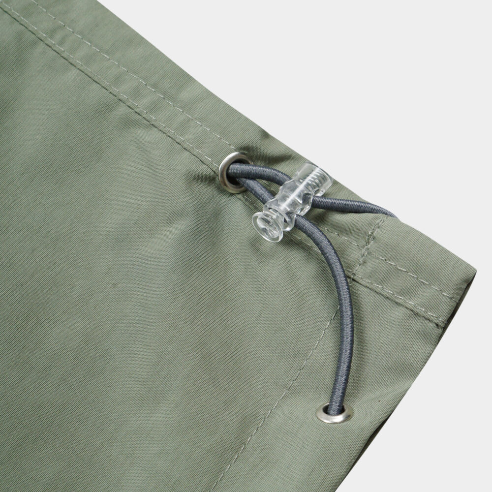 Bottom hem with elastic drawstring adjuster